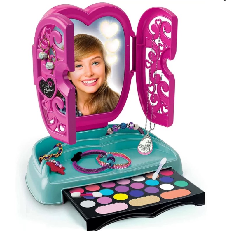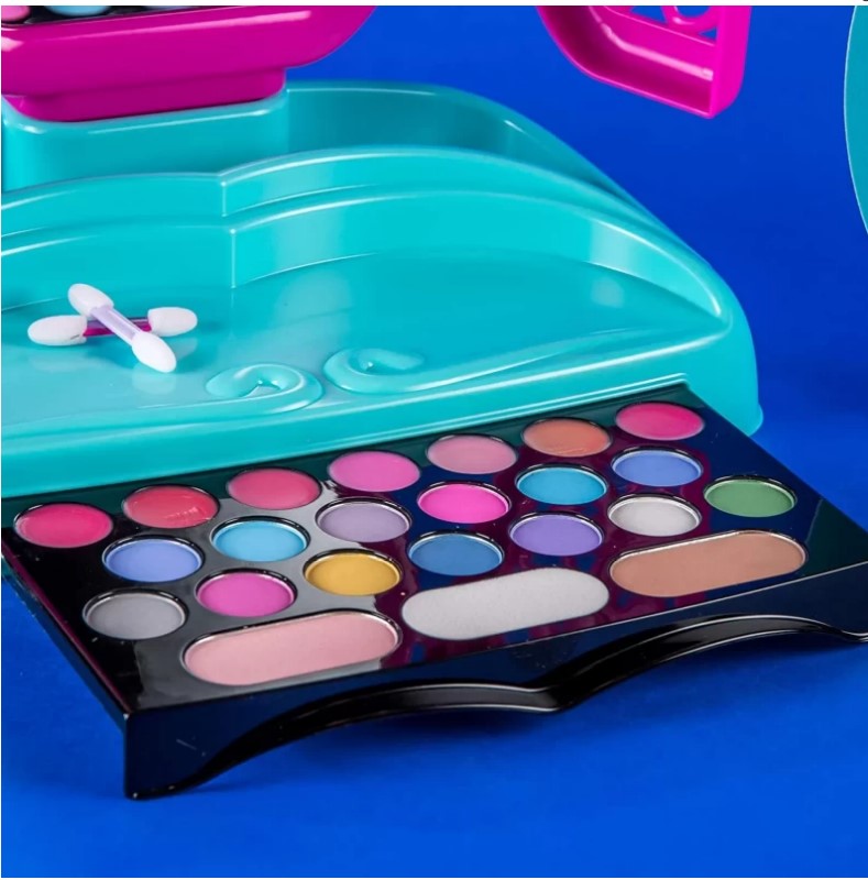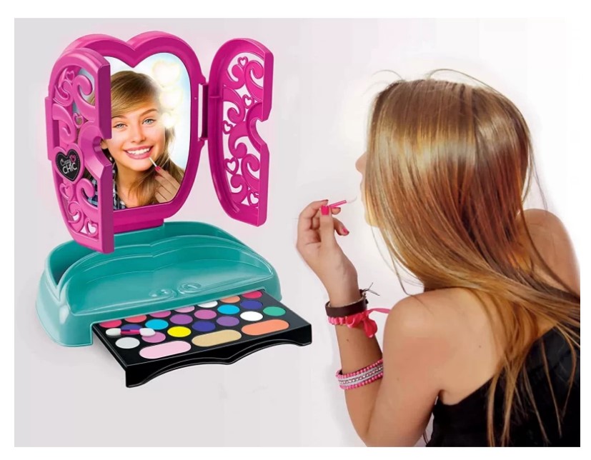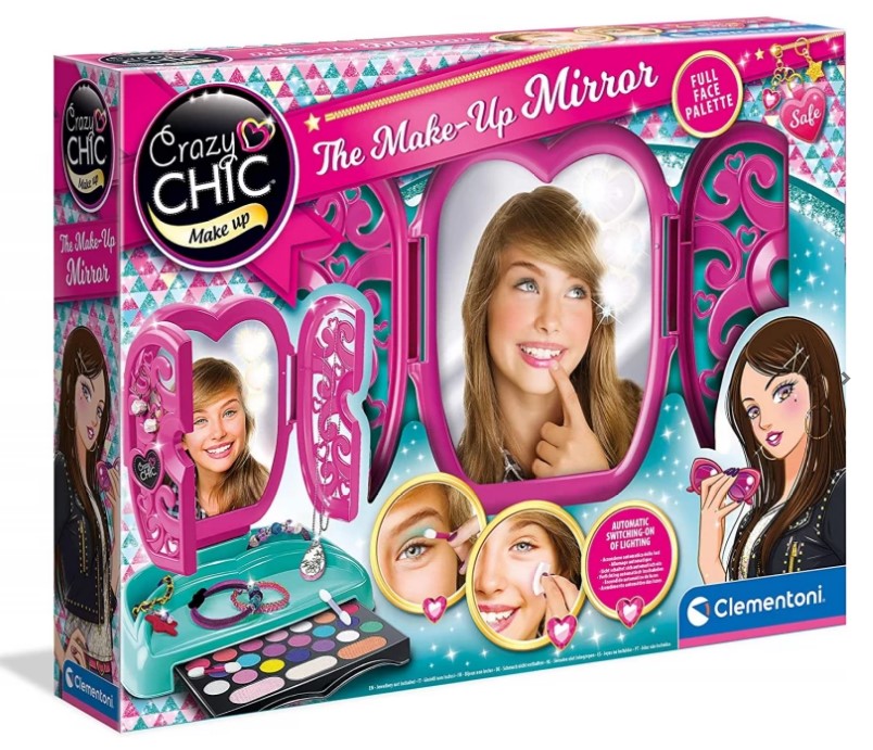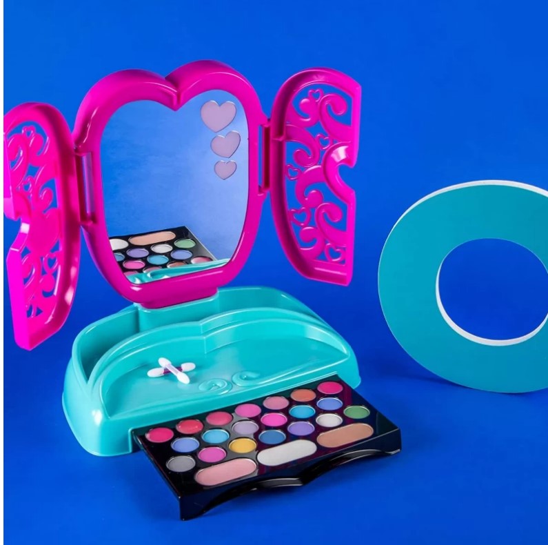 این آینه شامل مجموعهای غنی از لوازم آرایشی از جمله برق لب، سایه چشم و کرم پودر است؛ و برای آرایش کردن درست مانند آرایش مادرم، اپلیکاتور و یک اسفنج وجود دارد.
