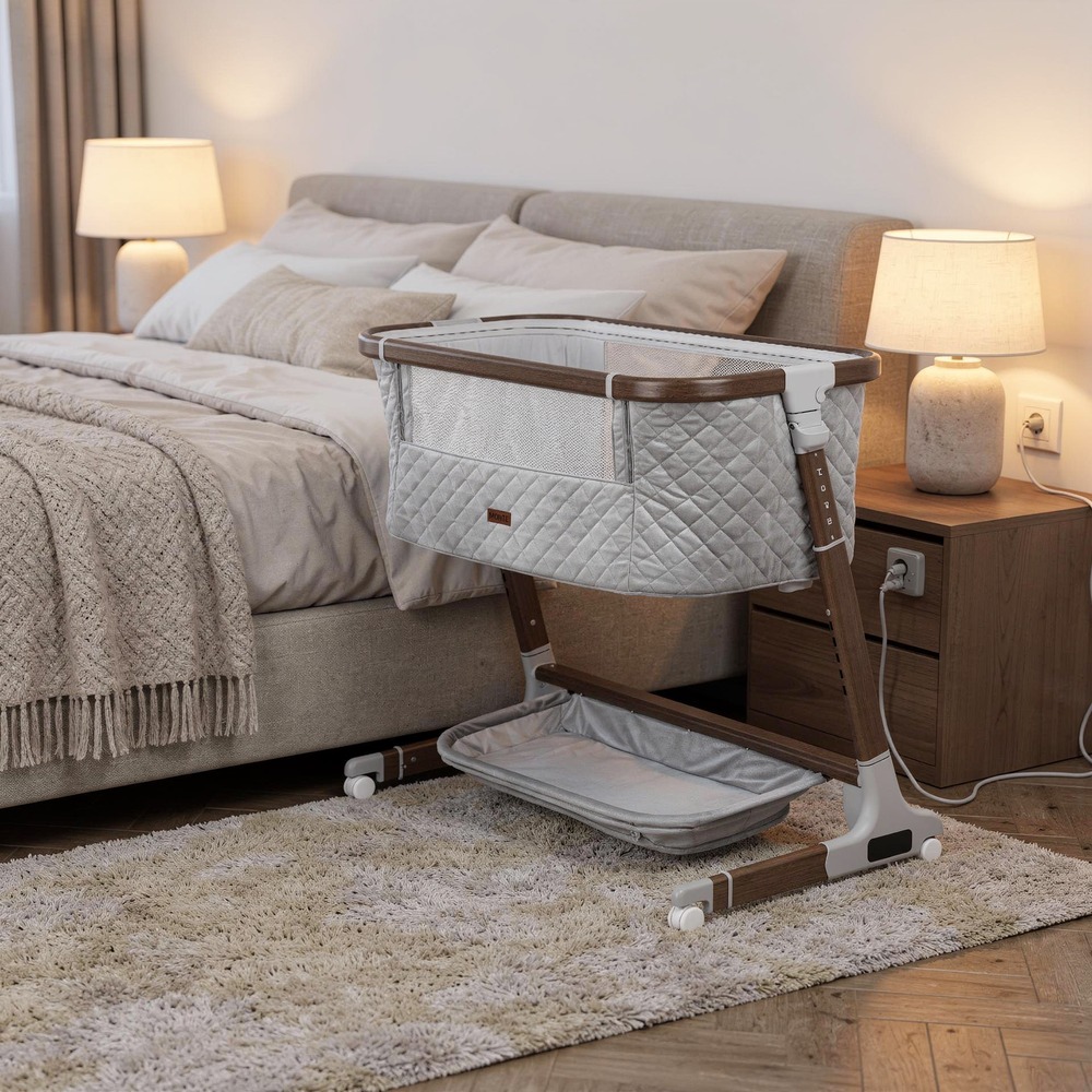 🔄 ارتفاع قابل تنظیم – سازگار با تخت والدین، مناسب برای همخوابگی ایمن (Bedside Crib).