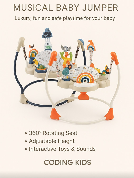 جامپر کودک موزیکال طرح جنگل زیبا و جذاب برای کودکان بالای 6 ماه است و تا 12 کیلوگرم تحمل وزن دارد. این جامپر دارای جغجغه و اسباب بازی های موزیکال است. با چرخش 360 درجه صندلی جامپر جنگل کودک می تواند با اسباب بازی ها و عروسک های موجود بازی کند و ساعت ها سرگرم شود.