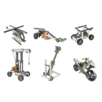 - محتویات: بیش از 250 قطعه شامل جعبهدنده، چرخدندهها، رینگها، لاستیکها، میلهها، موتور الکتریکی، دفترچه راهنما