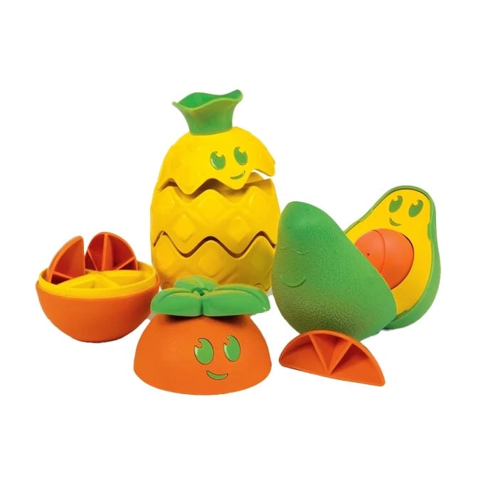 هر میوه برای افزایش منطق و مهارتهای شناختی کودک طراحی شده است، با سطحهای مختلف سختی برای همراهی کودک در مراحل رشد و توسعه تواناییهای او داردآووکادو باز میشود و یک توپ کوچک داخل آن قرار دارد که کودک باید آن را دربیاورد و دوباره جاگذاری کند. آناناس از قطعات قابل چیدمان تشکیل شده است. پرتقال باز میشود و 4 قاچ دارد که باید درآورده و دوباره در جای خود قرار داده شود. هر میوه تمرینهای متفاوتی برای تقویت مهارت دست و همچنین تجربههای حسی متنوع دارد.