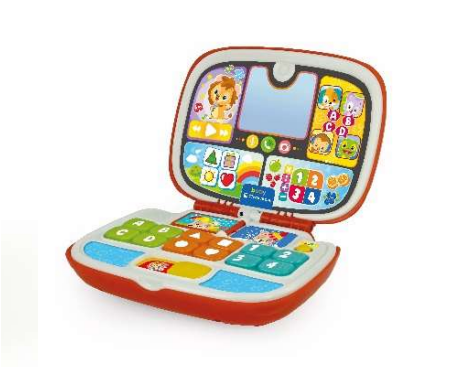 لب تاپ موزیکال و اموزشی از برند ایتالیایی کلمنتونی مه برای کودکان زیر 3 سال طراحی شده و هیچ گونه مواد سمی در متریال ان استفاده نشده و دو زبان انگیلیسی و اسپانیایی رو پشتیبانی میکنه