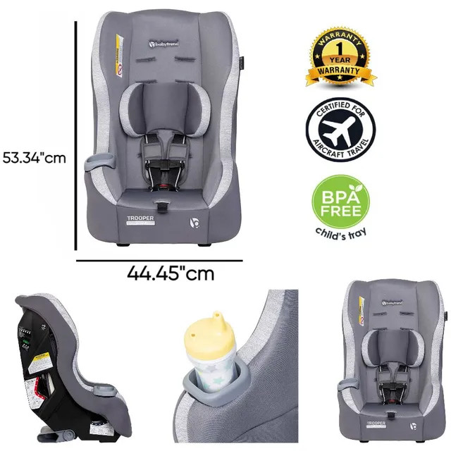 توضیحات صندلی ماشین قابل تبدیل 3 در 1 Baby Trend Trooper از صندلی کودک رو به عقب (4 تا 18 پوند) و صندلی کودک نوپا رو به عقب (18 تا 40 پوند) به صندلی کودک رو به جلو (22 تا 65 پوند) تبدیل می شود. کانورتیبل Trooper با تنظیم ارتفاع شانه در 5 حالت و سگک فاق 3 حالته برای تنظیم صندلی، راحتی فوق العاده ای را برای نصب و تنظیم به والدین می دهد. پایه تاشوی پشتی نیز به Trooper اجازه می دهد تا زوایای نصب عالی را به راحتی دریافت کند. قاب زیرک Trooper میتواند در اکثر وسایل نقلیه سه تایی قرار بگیرد که برای خانوادههایی که بیش از یک بچه دارند عالی است. پوسته سبک وزن همچنین امکان استفاده از نصب LATCH تا وزن 55 پوند را فراهم می کند. بالهای جانبی فوقالعاده عمیق، محافظت در برابر ضربههای جانبی و بالشتک عالی را ارائه میدهند و به نوزادان شما محافظت و پشتیبانی عالی از سر میدهند. با پارچه ممتاز و دو جا لیوان یکپارچه راحت، صندلی ماشین قابل تبدیل 3 در 1 Baby Trend Trooper ما واقعا راحتترین و راحتترین تجربه رفت و آمد/سفر را به فرزندان شما میدهد.