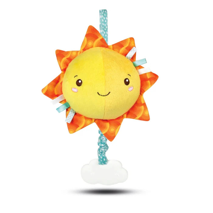 یک جغجغهی موزیکال لطیف از جنس پارچهی نرم که کودک را در لحظههای خواب همراهی میکند. • ملودی آرامشبخش آن طوری طراحی شده که به رشد احساسات مثبت مانند آرامش در کودک کمک کند. • نوار نرم با چسب ولکرو به راحتی به گهواره یا کالسکه متصل میشود. • بافت نرم این محصول باعث تحریک حس لامسه کودک میشود