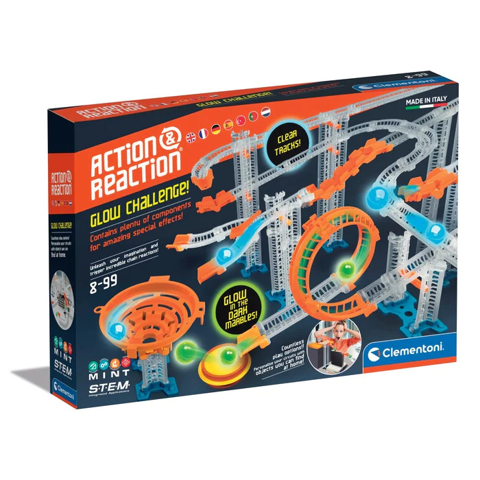 اسباب بازی های اکشن ری اکشن اکنون به جلوههای شگفتانگیز مجهز شدهاند تا نتیجهای هیجانانگیز ایجاد کنند ! با آهنگ های جذاب و توپ های درخشان در تاریکی، می توانید آهنگ های شگفت انگیز با جلوه های ویژه خارق العاده ایجاد کنید! با پل معلق مسیرهای هیجان انگیز بسازید، مسیرها را با شاخه ها دو برابر کنید و در ریل های مارپیچ تماشایی مسابقه دهید! تمام مسیرها را نیز می توانید با استفاده از وسایل خانگی سفارشی کنید تا کودکان بتوانند به تخیل خود اجازه رشد دهند. دستورالعملهای تصویری کودکان را در ایجاد مسیرهای که مشکل هستند راهنمایی میکند، ایدههای زیادی برای تکمیل مسیر تولید آهنگ ارائه میدهد و آنها را با فیزیک آشنا میکند.