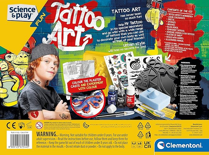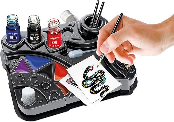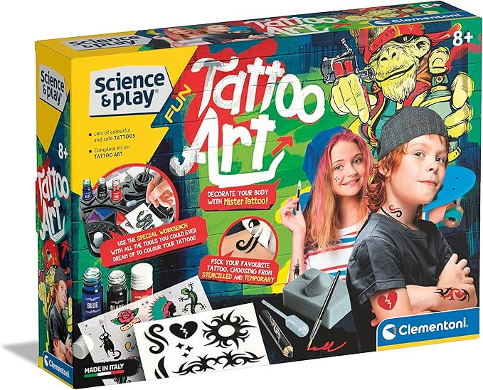 در مورد این مورد آزمایشگاهی که همچنین مجموعهای باورنکردنی است که شامل تمام موارد ضروری برای ساخت خالکوبیهای مد روز است! حاوی یک قلم نشانگر میز کار، رنگهای مایع و شابلونهایی برای ایجاد خالکوبی با دست آزاد مانند یک هنرمند خالکوبی واقعی! راهنما نحوه ساختن خالکوبی را به صورت گام به گام توضیح می دهد که کودک را در یک تجربه بازی سرگرم کننده و جذاب راهنمایی می کند. یک بازی که خلاقیت و مهارت های دستی را تحریک می کند
